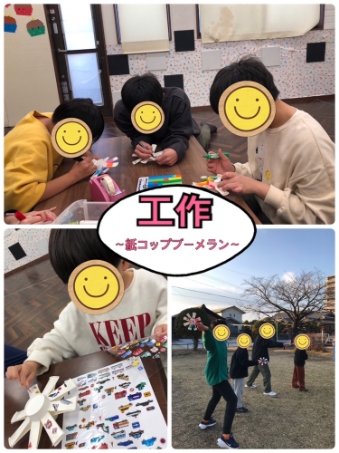 工作では、『紙コップブーメラン』を作りました。